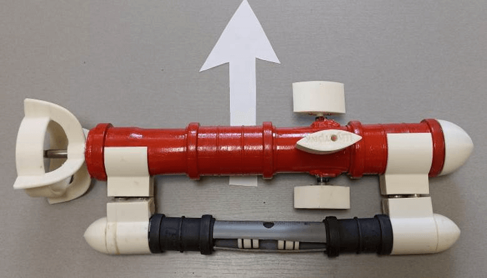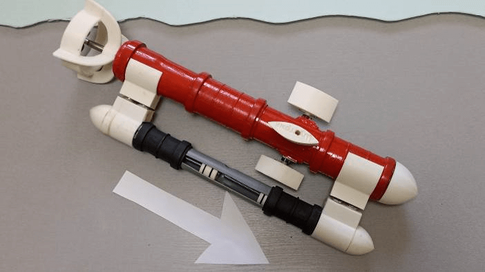 💬 «Прикрепив резьбовую шпильку к сервомотору, поршень был закреплен на шпильке, в предусмотренные канавки были установлены сантехнические резиновые уплотнители. Теперь поршень герметично располагается в трубе модуля погружения и не пропускает забортную воду к механизмам сервомоторов».