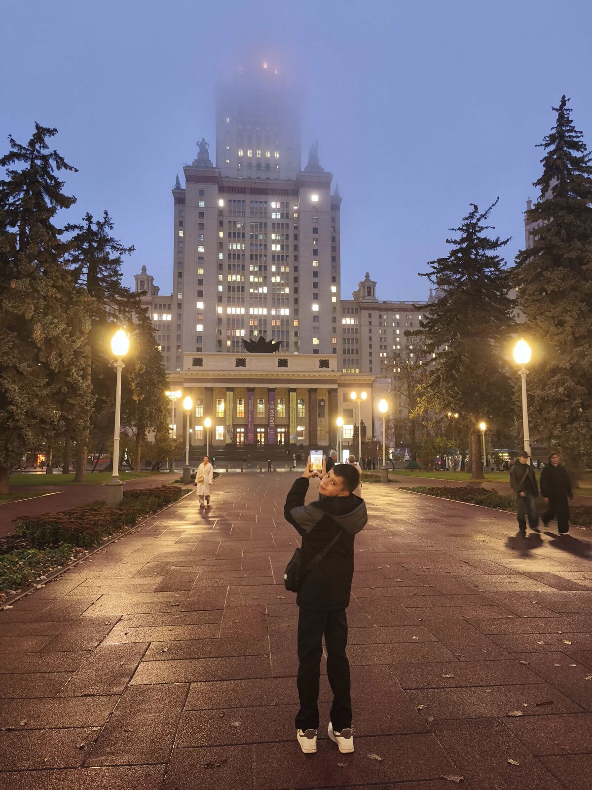 👉 Программа началась с экскурсии по Научному парку МГУ и фотографий на крыше с видом на Главное здание: